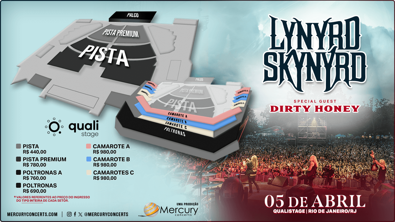 Para o Rio de Janeiro, a venda de ingressos começa no dia 17 de dezembro, às 10h, exclusivamente pelo site Eventim (www.eventim.com.br/lynyrdskynyrd).