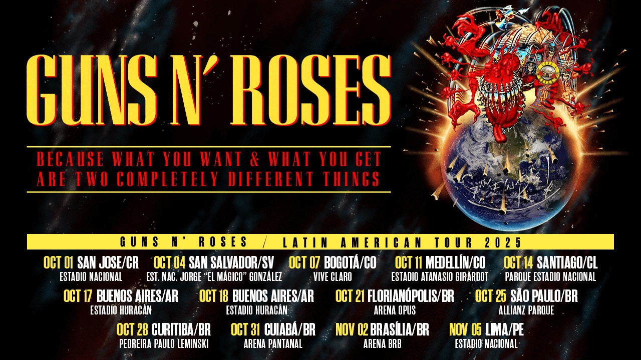 O Guns N’ Roses confirmou sua posição como uma das maiores bandas de rock em atividade ao lotar o Allianz Parque em São Paulo, no sábado, 25 de outubro de 2025. A apresentação, parte da turnê "Because What You Want and What You Get Are Two Completely Different Things", reuniu 49 mil pessoas, configurando o maior público da arena em 2025. A administração do estádio confirmou o feito, descrevendo o evento como “três horas de história”.O show teve uma duração aproximada de 3 horas e 10 minutos e contou com um repertório extenso de 30 canções. O setlist combinou clássicos como "Welcome to the Jungle", "Sweet Child O’ Mine", e "Paradise City", com faixas mais recentes, além de oito covers. Entre os momentos de destaque, Axl Rose tocou piano em "November Rain", enquanto Slash brilhou com um solo após "You Could Be Mine", com o talkbox solo em "Rocket Queen", e utilizando pedal steel guitar no cover de "Wichita Lineman". O dueto entre Axl e a plateia em "Knockin’ on Heaven’s Door" (cover de Bob Dylan) foi classificado como um dos pontos altos da noite.