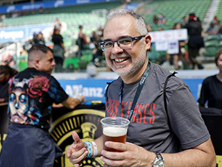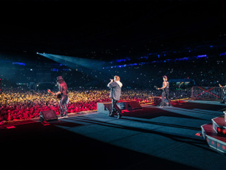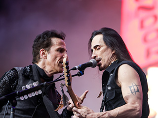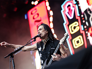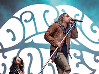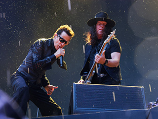 Extreme, uma das atrações mais esperadas do dia, foi recebida por uma rápida chuva de verão que lavou a alma do público que, desde as 10 horas, estava debaixo do sol, ao som de "It ('s a Monster)". Foram onze canções, mesclando grandes hits com o último álbum *Rise*. Nuno Bettencourt, um dos melhores guitarristas da atualidade, fez as vezes de mestre de cerimônia já que é português, e o público – com o Allianz praticamente lotado – gostou muito dessa interação. Um dos pontos altos foi quando o vocalista Gary Cherone e Nuno cantaram "More Than Words", acompanhados pelo público, numa performance emocionante.
