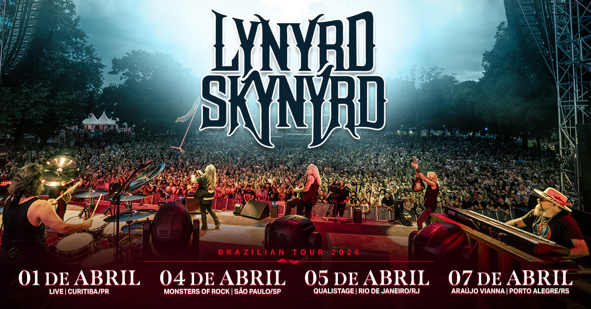 Lenda absoluta do southern rock, o Lynyrd Skynyrd confirmou novas apresentações no Brasil além de sua participação no Monsters of Rock. A banda se apresenta em Curitiba, Rio de Janeiro e Porto Alegre no início de abril, em uma sequência de shows que celebra mais de cinco décadas de uma das trajetórias mais influentes da história do rock.