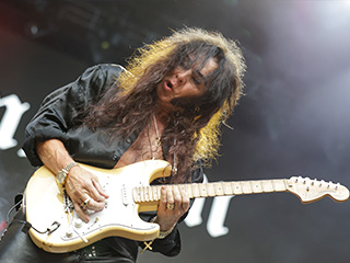 Extreme, uma das atrações mais esperadas do dia, foi recebida por uma rápida chuva de verão que lavou a alma do público que, desde as 10 horas, estava debaixo do sol, ao som de "It ('s a Monster)". Foram onze canções, mesclando grandes hits com o último álbum *Rise*. Nuno Bettencourt, um dos melhores guitarristas da atualidade, fez as vezes de mestre de cerimônia já que é português, e o público – com o Allianz praticamente lotado – gostou muito dessa interação. Um dos pontos altos foi quando o vocalista Gary Cherone e Nuno cantaram "More Than Words", acompanhados pelo público, numa performance emocionante.